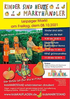 Kinder der Integrativen Kita Goldsternstraße als Markthändler auf dem Leipziger Markt