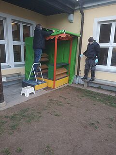 Die Leiterin der ASB Planitzer Kinderwelt beschreibt die Planung und den Bau des kidsMARKTSTANDES erlebnislernen draußen für Zwickau.