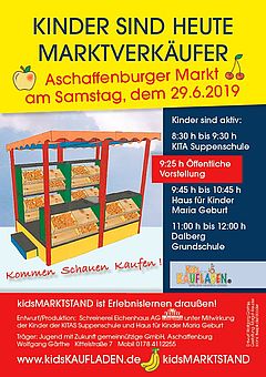 Paula Print war zu Besuch zum Aschaffenburger Markttag am 29.06.2019, als Kinder der Kitas Suppenschule, Haus für Kinder Maria Geburt und der Grundschule Dalberg sich als Marktverkäufer geübt haben. Lesen Sie hier, was sie dabei alles erlebt hat.